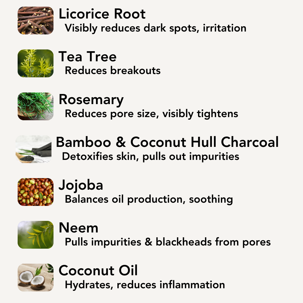 Step 1 on your path to flawless skin involves pore purification. An effective cleanser forms the cornerstone of vibrant and healthy skin. Our Pore Purger cleanser is enriched with activated bamboo and coconut hull charcoals, expertly eliminating impurities and addressing clogged pores. Licorice root works its magic, visibly reducing dark spots and irritation, while tea tree and rosemary hydrosols help visibly curb breakouts, minimize pore size, control excess oil, and leave your skin looking tighter and more youthful. This award winning charcoal cleanser ensures your skin says goodbye to clogged pores!